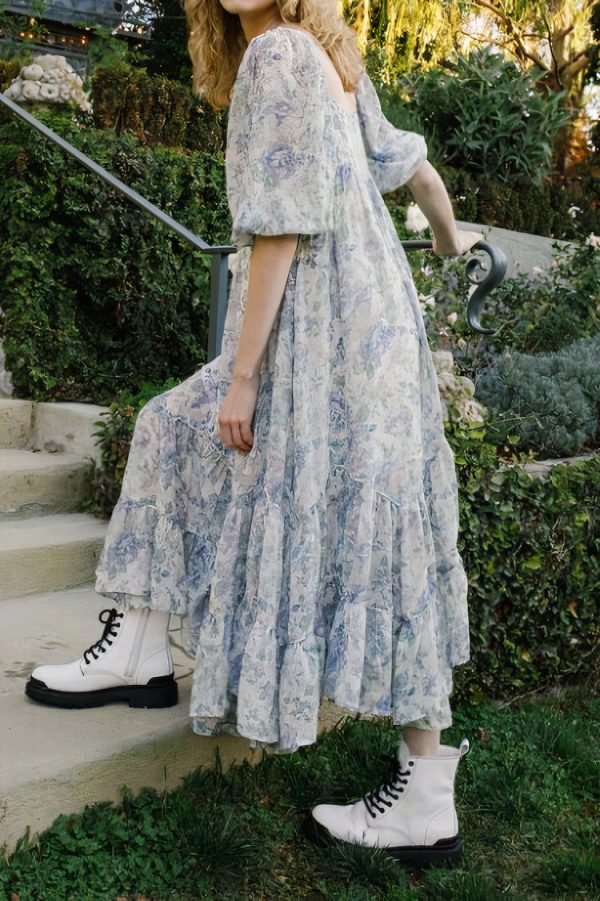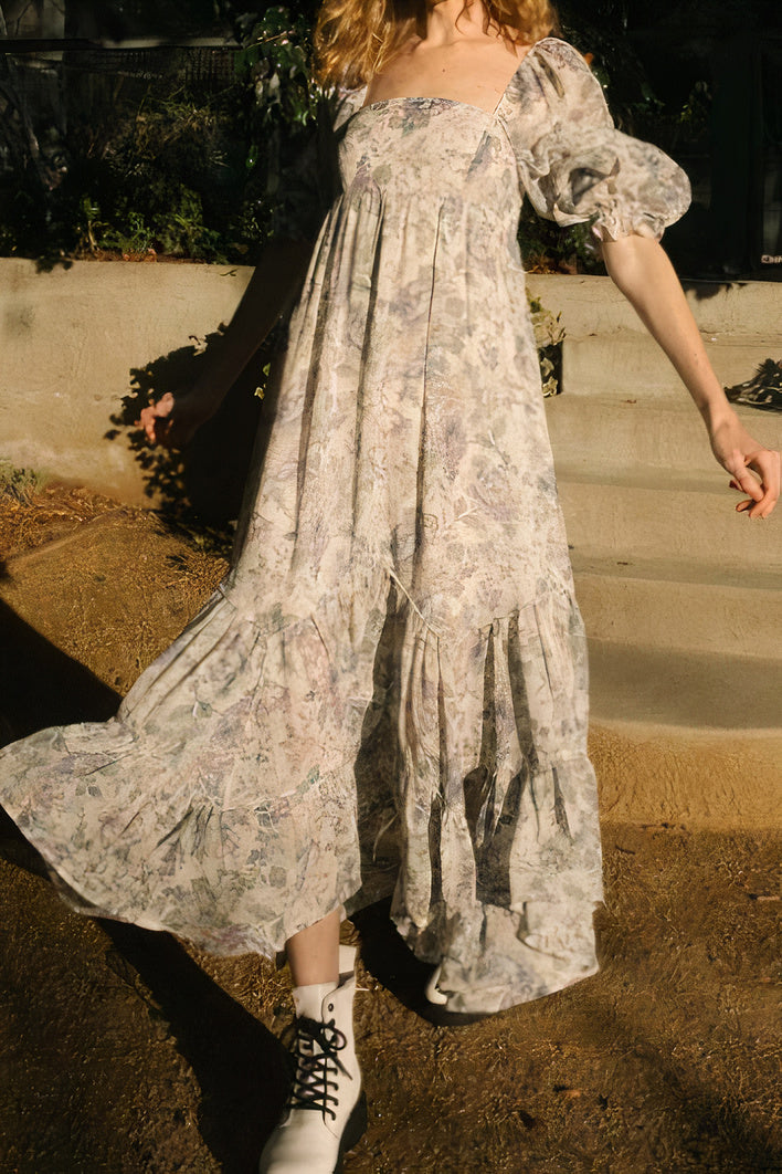 / LARGE REALISTIC FLORAL PRINT BABYDOLL MAXI DRESS