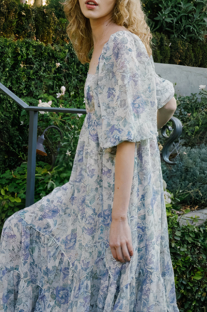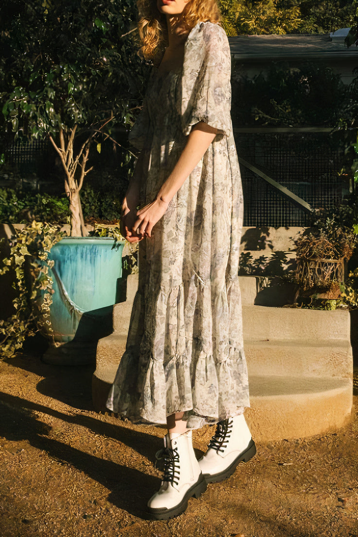 LARGE REALISTIC FLORAL PRINT BABYDOLL MAXI DRESS quantity